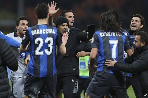 INTER ATALANTA MOVIOLA – L’arbitro Gervasoni perde la testa al minuto 18 della ripresa quando assegna un calcio di rigore all’Atalanta. Ci vogliono molti replay per capire che cosa ha visto l’arbitro: all’inizio si pensa a un contatto normale tra Ranocchia e Livaja. Dopo un po’ si capisce: Punito il presunto mani di Samuel (ammonito). Il difensore alza sì il braccio per ostacolare Denis, ma non tocca la palla. Penalty inventato. Proteste giuste anche da parte dell’Atalanta, sul 2 1 di Alvarez: prima c’è un fallo di Rocchi che frana su Stendardo, il pallone resta a Canini che sbaglia il passaggio al portiere. Ci stava la punizione. Nel finale: Ranocchia cade in area, ma non lo tocca nessuno. Prima di un angolo (a gioco fermo) pugno di Raimondi a Schelotto: rosso sacrosanto. A gara finita rissa furibonda: Schelotto e Cigarini tra i più attivi.