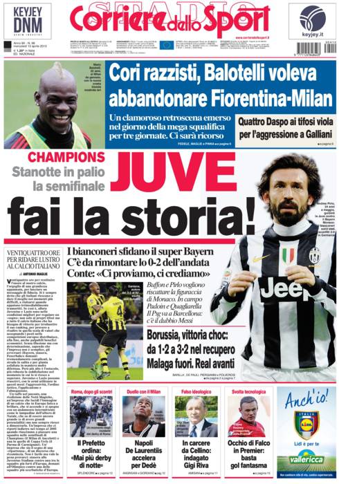 CORRIERE JUVENTUS – Sul Corriere dello Sport si parla della Juventus che vuole ribaltare il due a zero subito contro il Bayern Monaco.