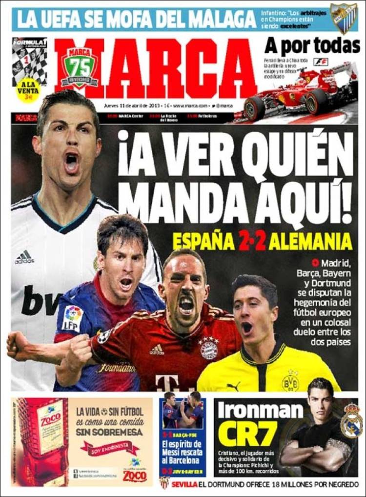 MARCA SPAGNA – Spagna contro Germania in Champions League. Due squadre spagnole e due squadre tedesche in semifinale.