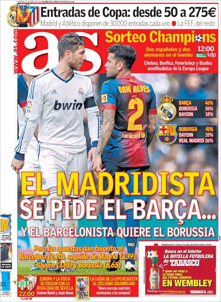 AS BARCELLONA – Anche il quotidiano As conferma la volontà del Real Madrid di scegliere il Barcellona.