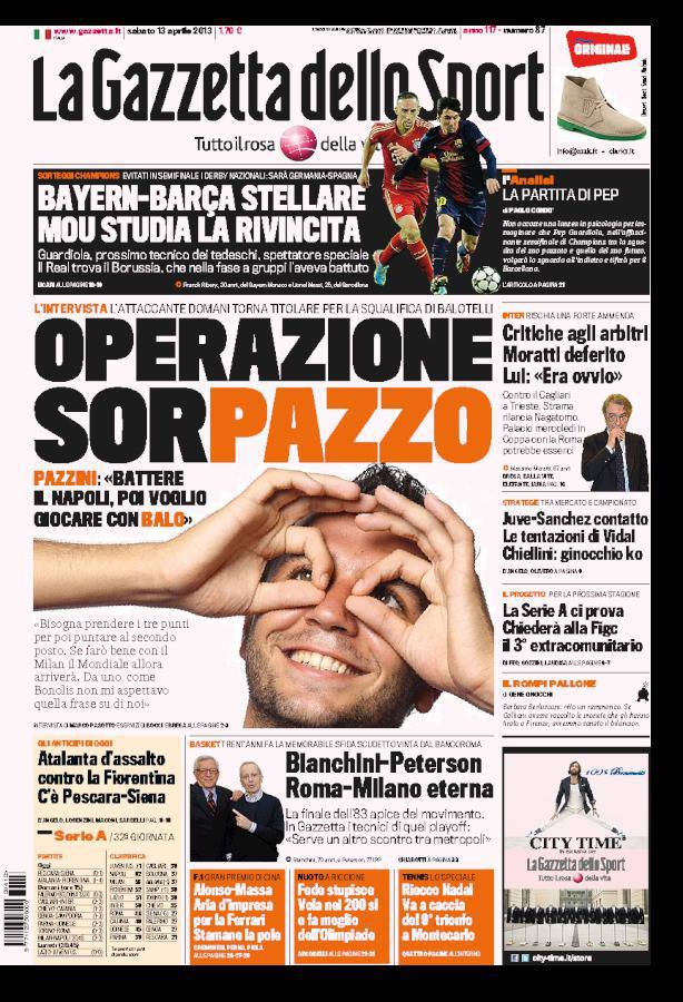 GAZZETTA PAZZINI – Sulla Gazzetta dello Sport intervista a Pazzini che vuole vincere contro il Napoli.