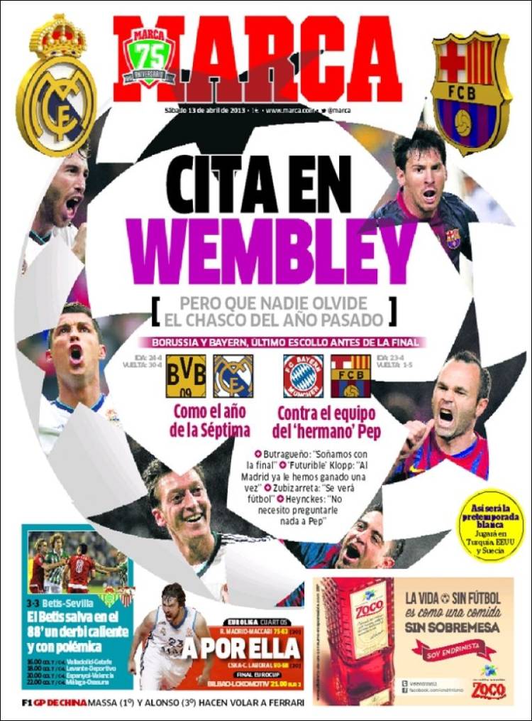 MARCA WEMBLEY – Barcellona e Real Madrid potrebbero ritrovarsi in finale di Champions League a Wembley.