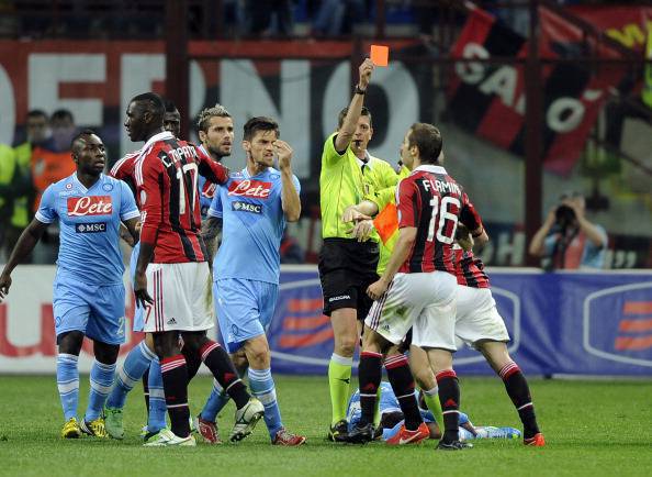 SERIE A MILAN NAPOLI – L’attesissima sfida per il secondo posto si conclude con un pari. Un punto a testa per Milan e Napoli, che si dividono la posta in palio. A San Siro sono i padroni di casa a passare in vantaggio al 29′ grazie ad un preciso tiro di Flamini dal limite dell’area. Trascorrono tre minuti e Pandev pareggia i conti, sfruttando nel migliore dei modi un traversone basso di Hamsik. Nulla di particolare da segnalare per la seconda frazione di gioco, se non che al 72′ i rossoneri rimangono in dieci per l’espulsione di Flamini. In classifica le distanze restano quindi invariate: Napoli a quota 63 punti e Milan a -4.