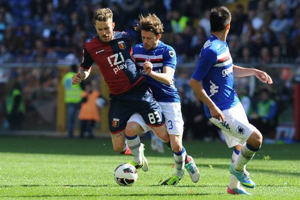 FANTACALCIO GENOA SAMPDORIA GAZZETTA – Allo stadio Luigi Ferraris finisce il parità per 1-1 il derby della Lanterna tra il Genoa e la Sampdoria. Un pareggio che serve a poco ai Grifoni che rimangono al penultimo posto in classifica in compagnia del Palermo. E’ la Sampdoria a segnare per prima al 28′ minuto del primo tempo con Eder che con un calcio di punizione battuto sotto la barriera beffa Frey con il pallone che si insacca nell’angolo basso a sinistra. All’80’ arriva il pareggio rossoblu grazie a Matuzalem che con un tiro-cross dalla distanza che sorprende Romero leggermente fuori dai pali. Ecco i voti e le pagelle de La Gazzetta dello Sport: