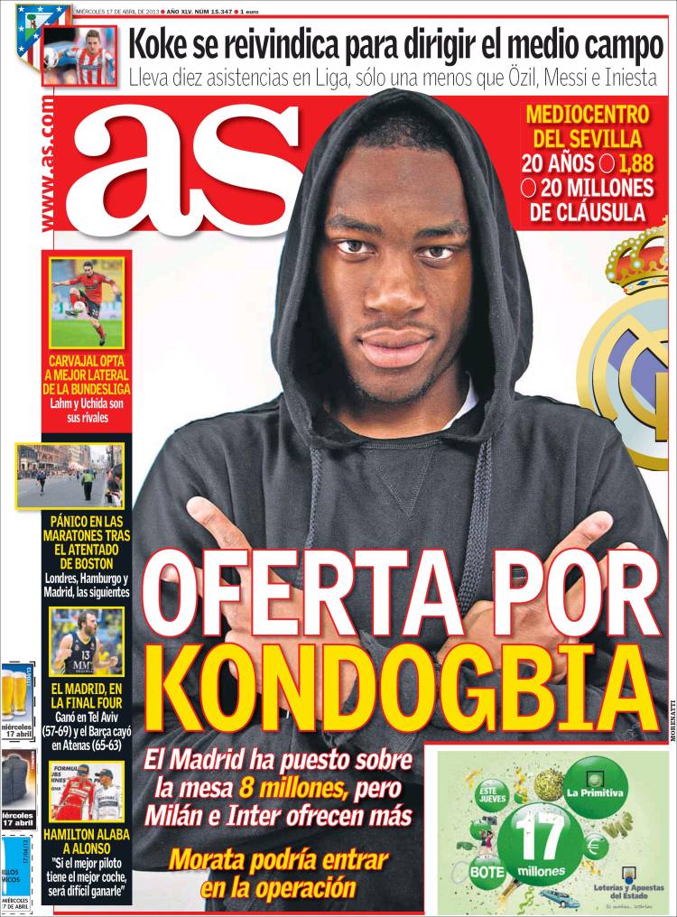 AS KONDOGBIA – Sul quotidiano As si parla del Real Madrid che ha fatto un’offerta per Kondogbia.