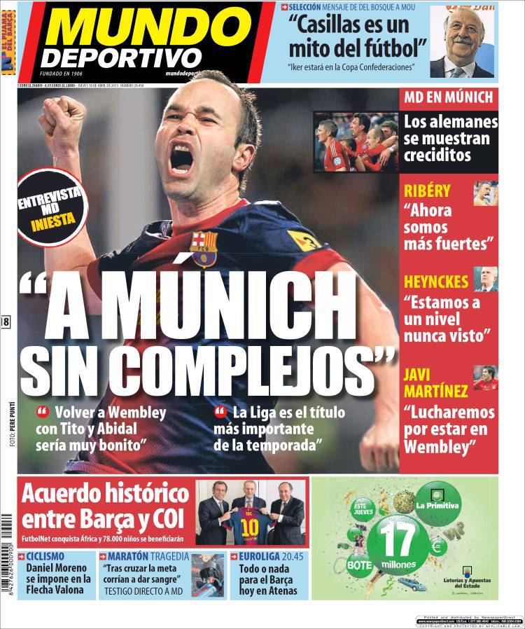 MUNDO DEPORTIVO BARCELLONA – Sul quotidiano Mundo Deportivo si parla di Iniesta che ha caricato i compagni di squadra in vista della partita contro il Bayern Monaco.