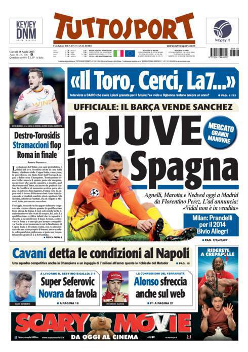TUTTOSPORT JUVENTUS – Il Barcellona ha deciso di vendere Sanchez, la Juventus vola in Spagna.