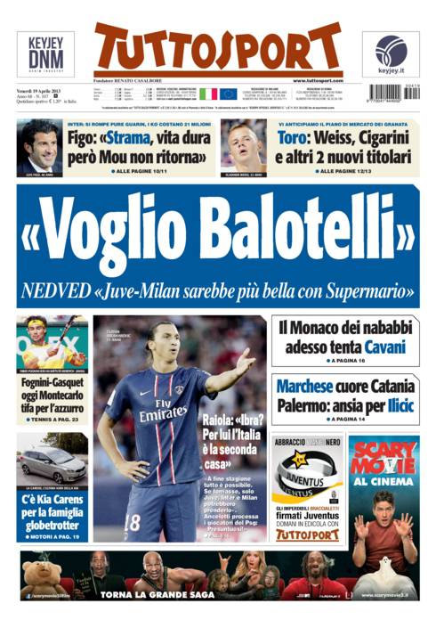 TUTTOSPORT BALOTELLI – Su Tuttosport si parla invece di Nedved che vorrebbe Balotelli in campo contro la Juventus domenica.