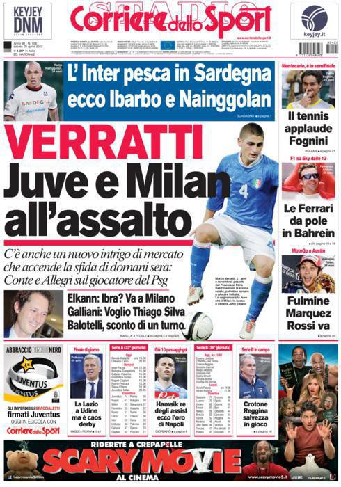 CORRIERE VERRATTI – Sul Corriere dello Sport si parla di Verratti con Juventus e Milan pronti all’assalto del giocatore.