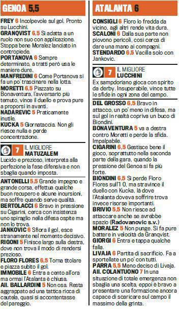FANTACALCIO GENOA ATALANTA VOTI PAGELLE GAZZETTA DELLO SPORT – Un pareggio che non può soddisfare di certo il Genoa quello di ieri nella gara contro l’Atalanta. Per salvarsi a questo punto serve davvero tanto altro, ed uno stop casalingo con un’Atalanta quasi salva, potrebbe compromettere il cammino dei rossoblu. 1-1 siglato dalle reti di Floro Flores e Del Grosso, entrambi a segno nei primi 8 minuti della gara. Poi molte azioni, ma davvero poche occasioni pericolose. Vi proponiamo i voti e le pagelle della Gazzetta dello Sport per la gara di ieri.