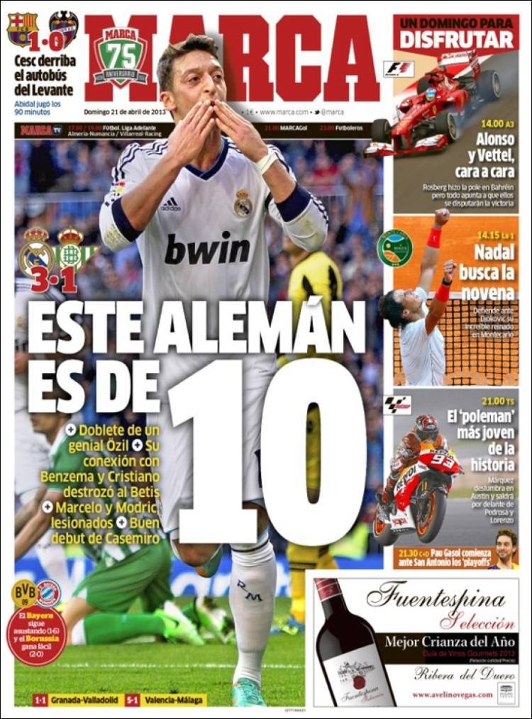 REAL MADRID BETIS SIVIGLIA OZIL – Il Real Madrid batte il Betis Siviglia per 3-1 aspettando la semifinale di Champions League, mercoledì contro il Borussia Dortmund. Grande protagonista del match di ieri è stato il tedesco Ozil, autore di una doppietta. Con Benzema e Cristiano Ronaldo ha distrutto il Betis. Infortunai Marcelo e Modric. Buon debutto di Casemiro.
