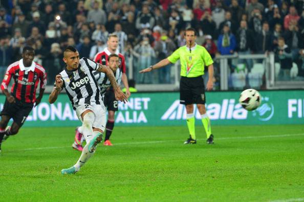 SERIE A JUVENTUS MILAN – La Juventus è sempre più vicina a tagliare il traguardo scudetto. Impegnati questa sera nel posticipo della 33esima giornata di campionato, gli uomini di Antonio Conte hanno conquistato altri tre punti fondamentali battendo di misura il Milan. Nulla da segnalare nel primo tempo, se non che Abbiati deve lasciare il campo per un problema al polpaccio; al suo posto entra Amelia. Nella ripresa arriva l’episodio che cambia il volto del match. Al 56′ Asamoah scappa ad Abate e viene steso in piena area rossonera proprio da Amelia. Per l’arbitro Banti è rigore: dal dischetto si presenta Vidal che non sbaglia. Il centrocampista cileno, autore di due gol lunedì scorso contro la Lazio, si conferma ancora una volta decisivo. Di seguito il video con l’episodio che segnato la gara.