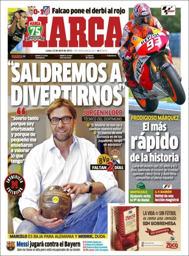 MARCA KLOPP – Intervista esclusiva su Marca a Klopp, tecnico del Borussia Dortmund che mercoledì sfiderà il Real Madrid nella semifinale di Champions League.