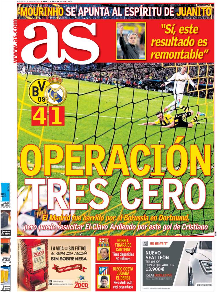 AS REAL MADRID – Il quotidiano As parla del miracolo sportivo che dovrà compiere il Real Madrid per arrivare a Wembley.