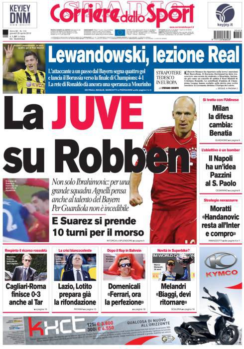 CORRIERE JUVENTUS – La Juventus ha deciso, vuole puntare su Robben come esterno destro.