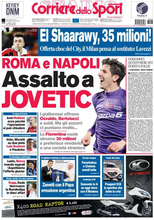 CORRIERE ROMA NAPOLI – Sul Corriere dello Sport si parla di Jovetic che piace molto a Roma e Napoli.