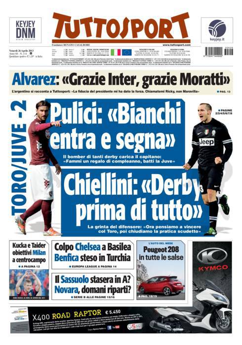 TUTTOSPORT TORINO JUVENTUS – Meno due giorni al derby tra Torino e Juventus, l’ex idolo del Torino Pulici carica Rolando Bianchi.