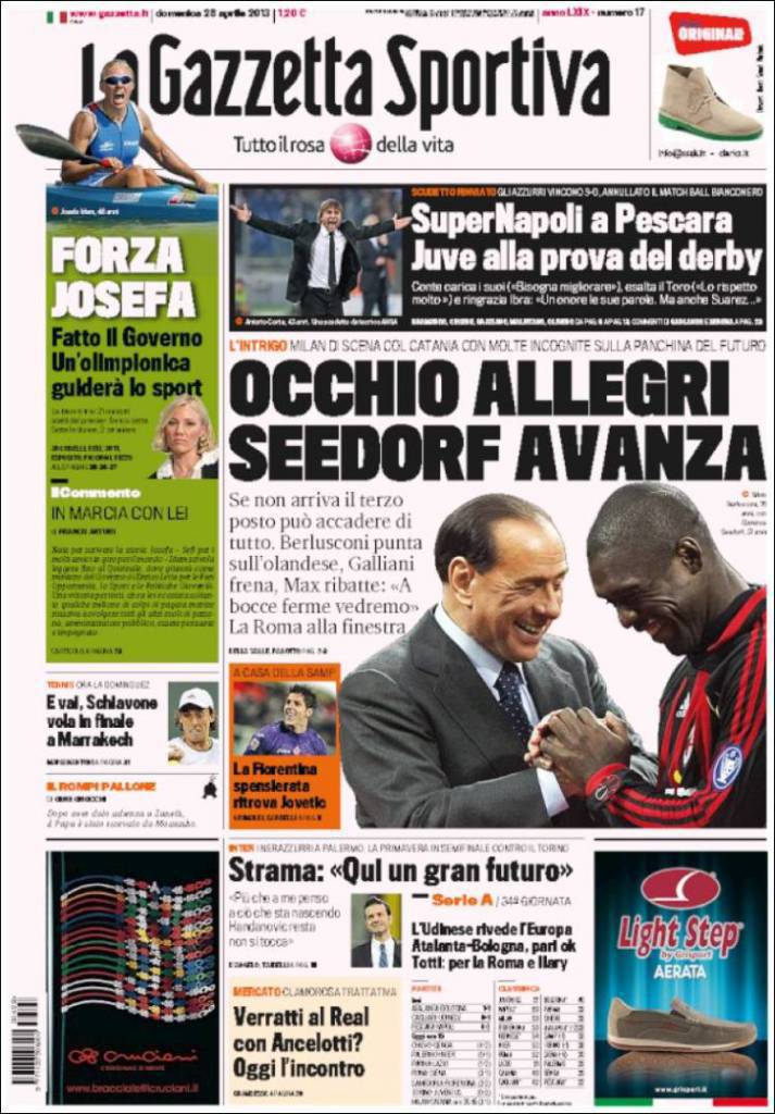 Gazzetta dello Sport: Occhio Allegri, Seedorf avanza