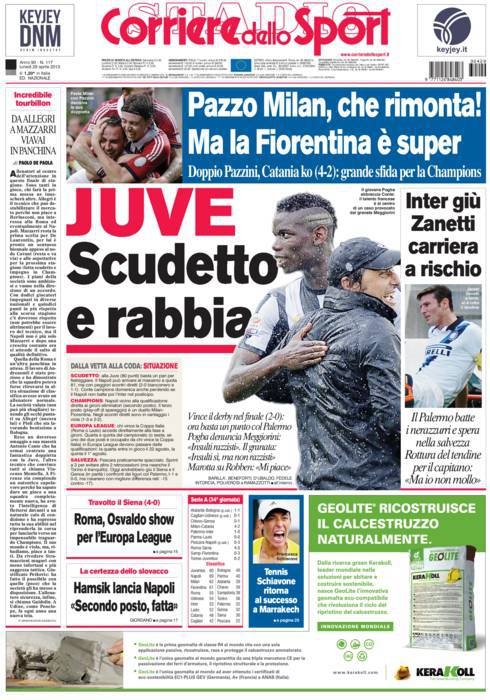 CORRIERE JUVENTUS – La Juventus vicina alla vittoria dello Scudetto. Dopo il derby contro il Torino Pogba si lamenta per offese razziste da parte di Meggiorini.