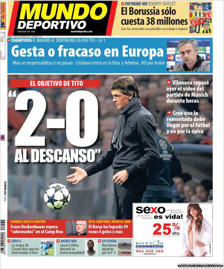 MUNDO DEPORTIVO VILANOVA – Il tecnico del Barcellona per la rimonta sul Bayern Monaco chiede ai suoi di arrivare alla fine del primo tempo sul due a zero.