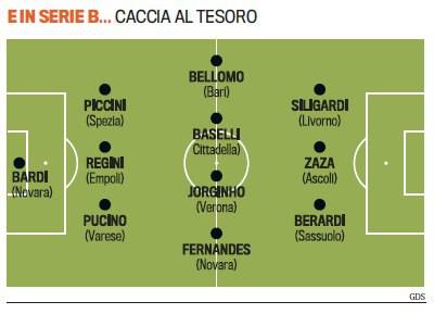 FOTO TOP 11 CALCIATORI SERIE B – In un periodo di grande crisi economica, anche le società sono costrette a guardarsi intorno ed a puntare i migliori giovani da crescere in casa. Diciamoci la verità: questo è anche un bene per il nostro calcio. Quanti El Shaarawy o Pogba sarebbero riusciti a ritagliarsi degli spazi in Serie A solo qualche anno fa? Posta questa riflessione, la Gazzetta dello Sport ha pubblicato stamani un’interessante formazione che mette in campo i migliori 11 giovani della Serie B, richiesti da tantissime squadre di Serie A. Ecco quelli che saranno i campioni del domani!