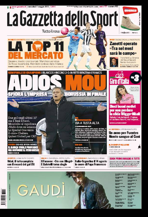 GAZZETTA REAL MADRID – Il Real Madrid sfiora l’impresa vincendo due a zero contro il Borussia Dortmund ma passano in finale di Champions i tedeschi.