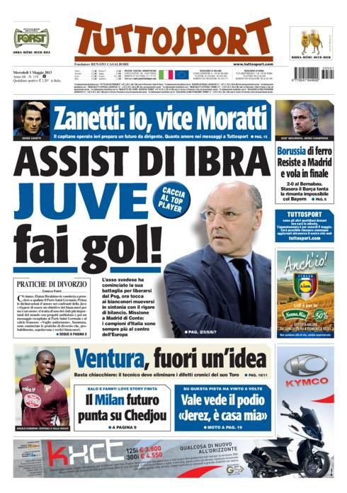TUTTOSPORT IBRAHIMOVIC JUVENTUS – Su Tuttosport si parla di Ibrahimovic che vuole liberarsi dal Psg per arrivare alla Juventus.