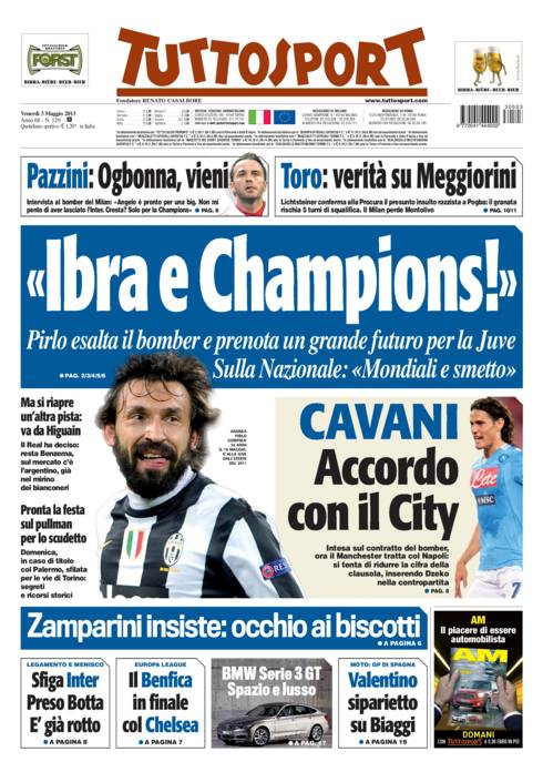 TUTTOSPORT IBRAHIMOVIC – Su Tuttosport parla Pirlo che chiede l’acquisto di Ibrahimovic e la vittoria della Champions.