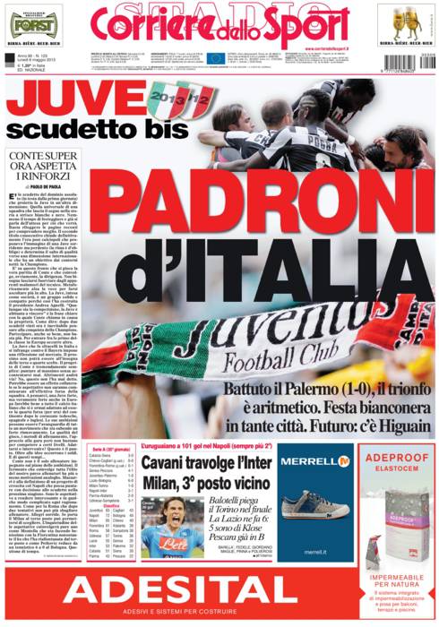 CORRIERE JUVENTUS – Il titolo del Corriere dello Sport è eloquente, la Juventus è Campione d’Italia.