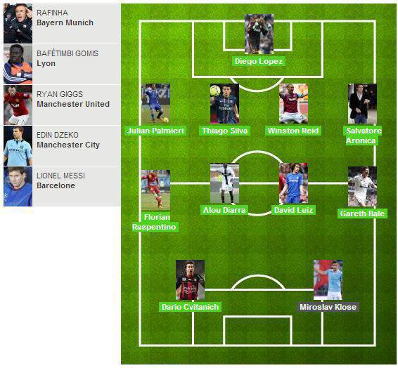 FOTO TOP 11 DOMENICA CAMPIONATI EUROPEI ITALIANI – Il sito francese sofoot.com, ha redatto nella giornata di oggi la top 11 dei migliori calciatori della domenica di tutti i maggiori campionati europei. Un 4-4-2 davvero interessante che vede in campo anche due giocatori presi dal nostro campionato: Salvatore Aronica, difensore del Palermo, bravo a reggere l’urto della Juventus campione d’Italia, ed il “pentagoleador” Miroslav Klose, autore di un pokerissimo di grandissima fattura nella sfida interna contro il Bologna. Una formazione davvero molto interessante.