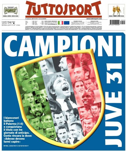 TUTTOSPORT – Di seguito la prima pagina di Tuttosport, dedicata naturalmente alla vittoria dello scudetto da parte della Juventus.