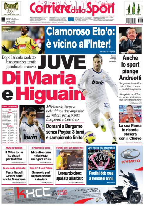 CORRIERE DI MARIA HIGUAIN – Sul Corriere dello Sport si parla di Di Maria e Higuain come possibili rinforzi per la Juventus.