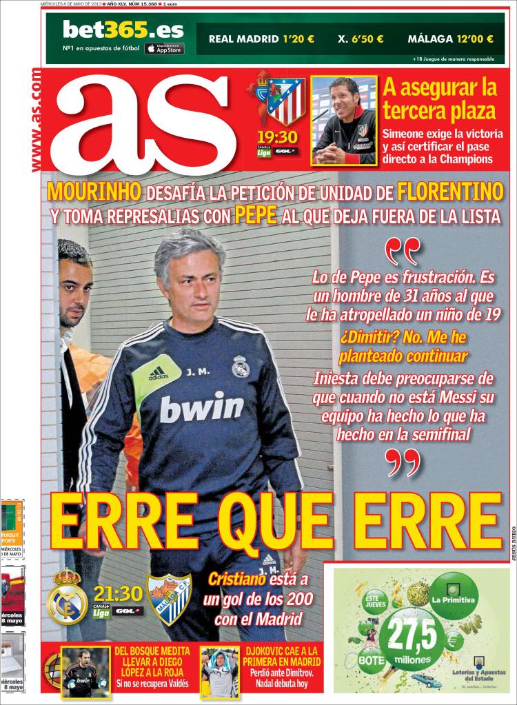 AS MOURINHO – Mourinho show in conferenza stampa dove attacca Pepe e risponde per le rime ai critici sulla non titolarità di Casillas.