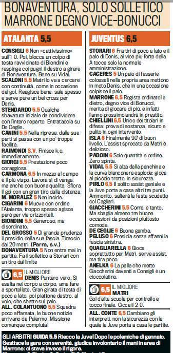 ATALANTA JUVENTUS VOTI PAGELLE GAZZETTA SPORT – Di seguito troverete i voti e le pagelle Gazzetta dello Sport di Atalanta-Juventus, gara giocatasi ieri sera allo stadio Atleti Azzurri d’Italia, conclusasi con il risultato di 1 a 0 in favore dei bianconeri. Migliore dell’incontro è stato Alessandro Matri, autore del gol vittoria. Male invece Caceres, un po’ troppo pasticcione in qualche occasione, mentre bene il solito Pirlo nonché il talentuoso Marrone, ieri titolare in difesa al posto di Leonardo Bonucci, e protagonista di un’ottima prova.