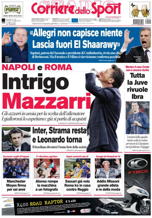 CORRIERE MAZZARRI – Sul Corriere dello Sport si parla di Mazzarri che non ha deciso ancora di rinnovare il contratto con il Napoli. La Roma è alla finestra.