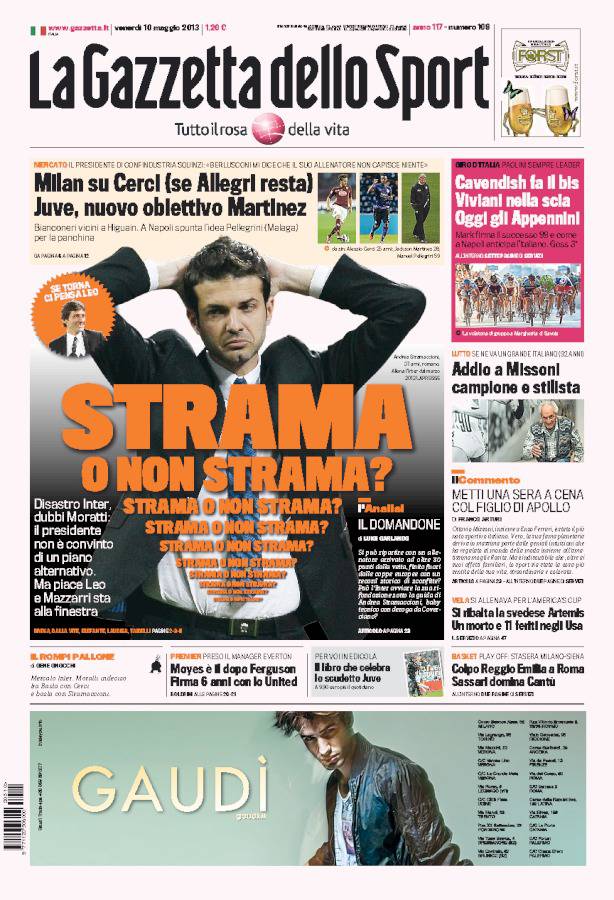 GAZZETTA STRAMACCIONI – Sulla Gazzetta dello Sport si parla di Stramaccioni. Moratti non è convinto del tecnico romano.