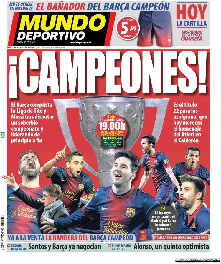 RASSEGNA STAMPA BARCELLONA CAMPIONA – Il Barcellona di Vilanova e Messi conquista la Liga dopo aver disputato un magnifico campionato dominando dall’inizio alla fine della stagione.