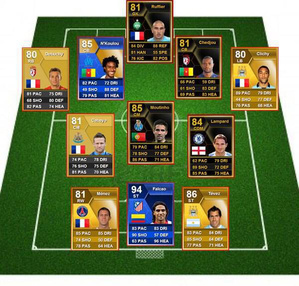 in porta potrebbe arrivare Ruffier, difesa con Debuchy, N’Koulou, Chedjou, Clichy, centrocampo composto da Cabaye, Joao Moutinho e Frank Lampard, attacco con il neo arrivato Falcao, accompagnato da Carlitos Tevez e Jeremy Menez.