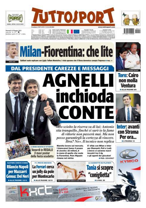 TUTTOSPORT AGNELLI – Su Tuttosport vengono riportate le dichiarazioni di Agnelli che vuole trattenere Conte.