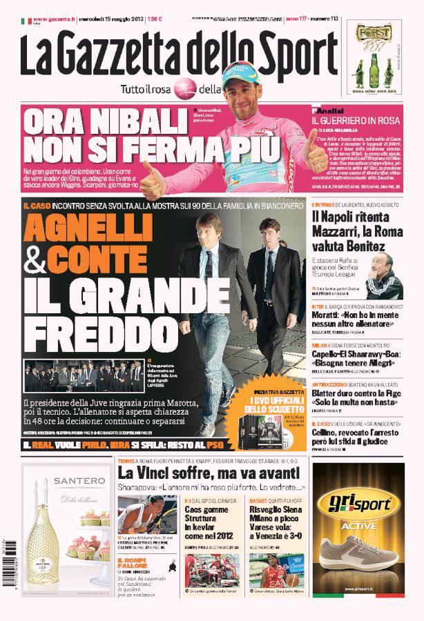 GAZZETTA AGNELLI CONTE – Sulla Gazzetta dello Sport si parla di Agnelli e Conte che continuano a non trovare l’accordo tra di loro.