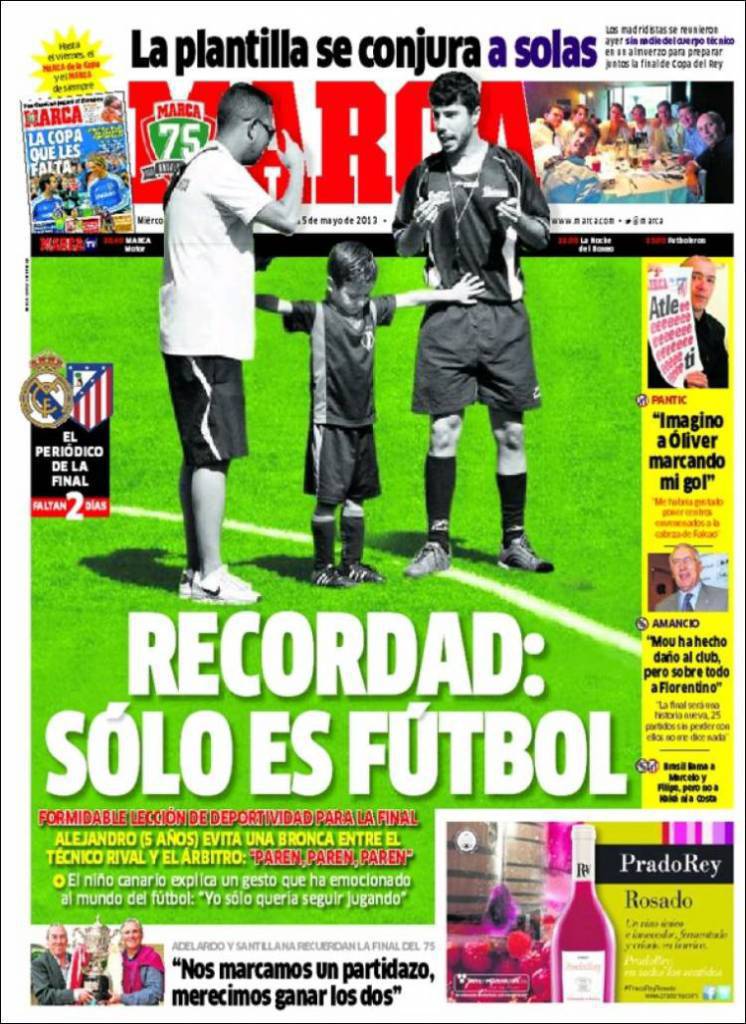 MARCA DERRBY – A due giorni dal derby tra Atletico Madrid e Real Madrid, si parla del gesto di sportività fatto dal giovane bambino Alejandro di 5 anni che ha fermato il litigio tra arbitro e allenatore.
