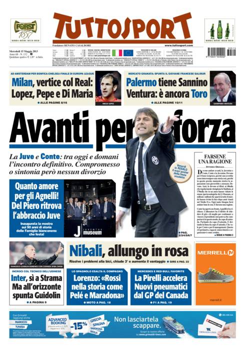 TUTTOSPORT CONTE – Tra Conte e la Juventus alla fine arriverà l’accordo sulla continuazione del rapporto. Lo rivela Tuttosport.