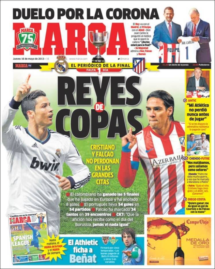 MARCA COPPA DEL REY – Sul quotidiano Marca si parla di Ronaldo e Falcao che vengono eletti come Re di Coppa in vista della finale alla Coppa del Re.