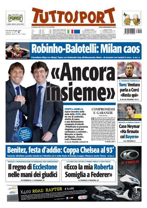 TUTTOSPORT JUVENTUS – Ovviamente Tuttosport dedica ampio spazio all’accordo tra la Juventus e Antonio Conte.