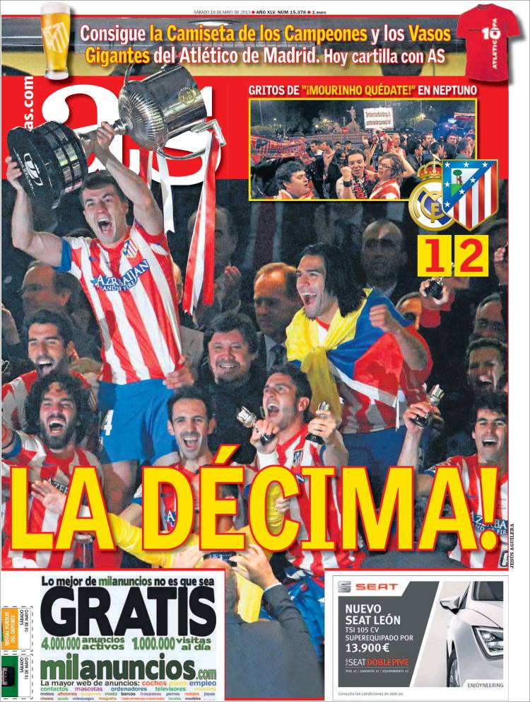 AS ATLETICO MADRID – Con la vittoria per due a uno contro il Real Madrid, l’Atletico Madrid vince la Decima Copa del Rey.