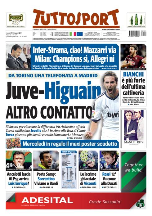TUTTOSPORT PRIMA PAGINA – Di seguito la prima pagina de Tuttosport, che apre la trattativa Juventus – Higuain:
