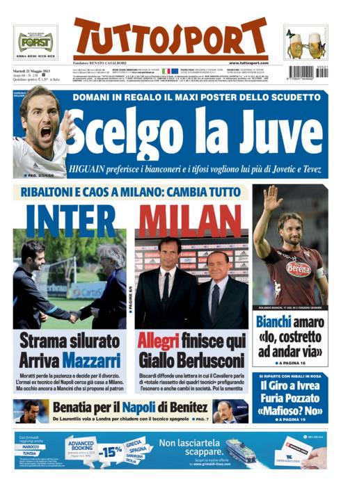 TUTTOSPORT HIGUAIN – Su Tuttosport si parla della Juventus che ha ricevuto l’ok da parte di Higuain.