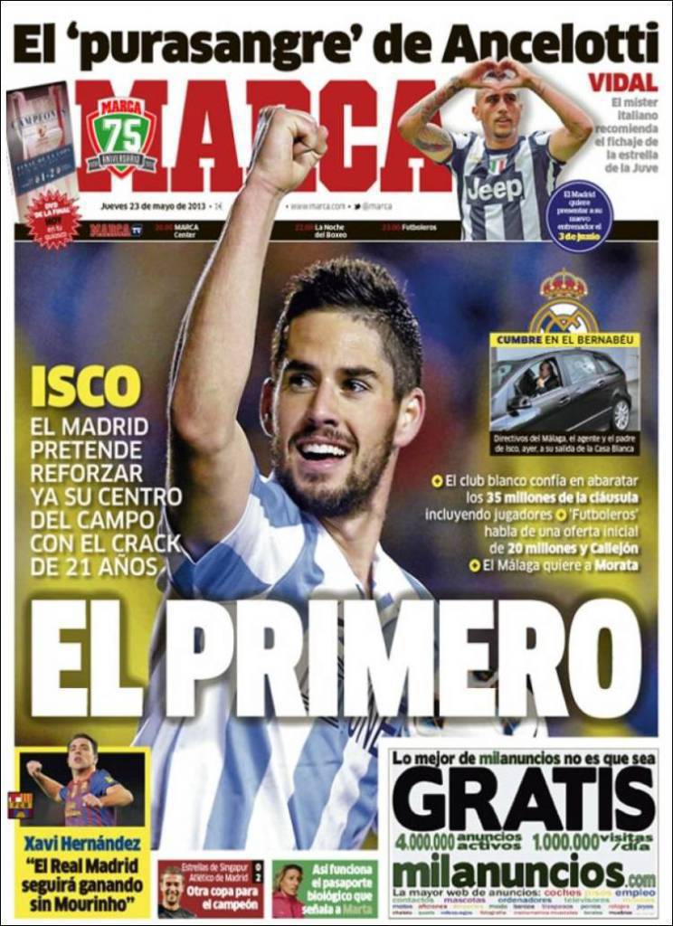 MARCA ISCO – Il Real Madrid vuole assolutamente prendere Isco del Malaga come acquisto primario.
