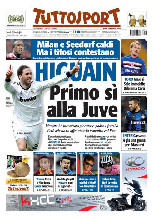 TUTTOSPORT HIGUAIN – Su Tuttosport si parla di Higuain che ha detto il primo sì alla Juventus.