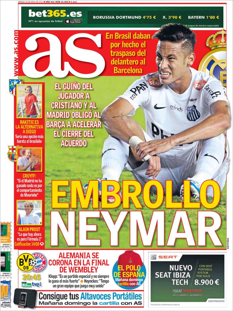 AS NEYMAR – Sul quotidiano As si parla del futuro di Neymar che è diventato un caso tra Real Madrid e Barcellona.